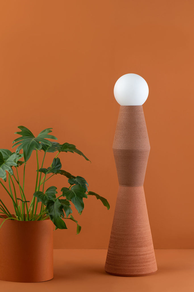 Light up your space with this modern ceramic lamp. In a trimmed raw finish terracotta.