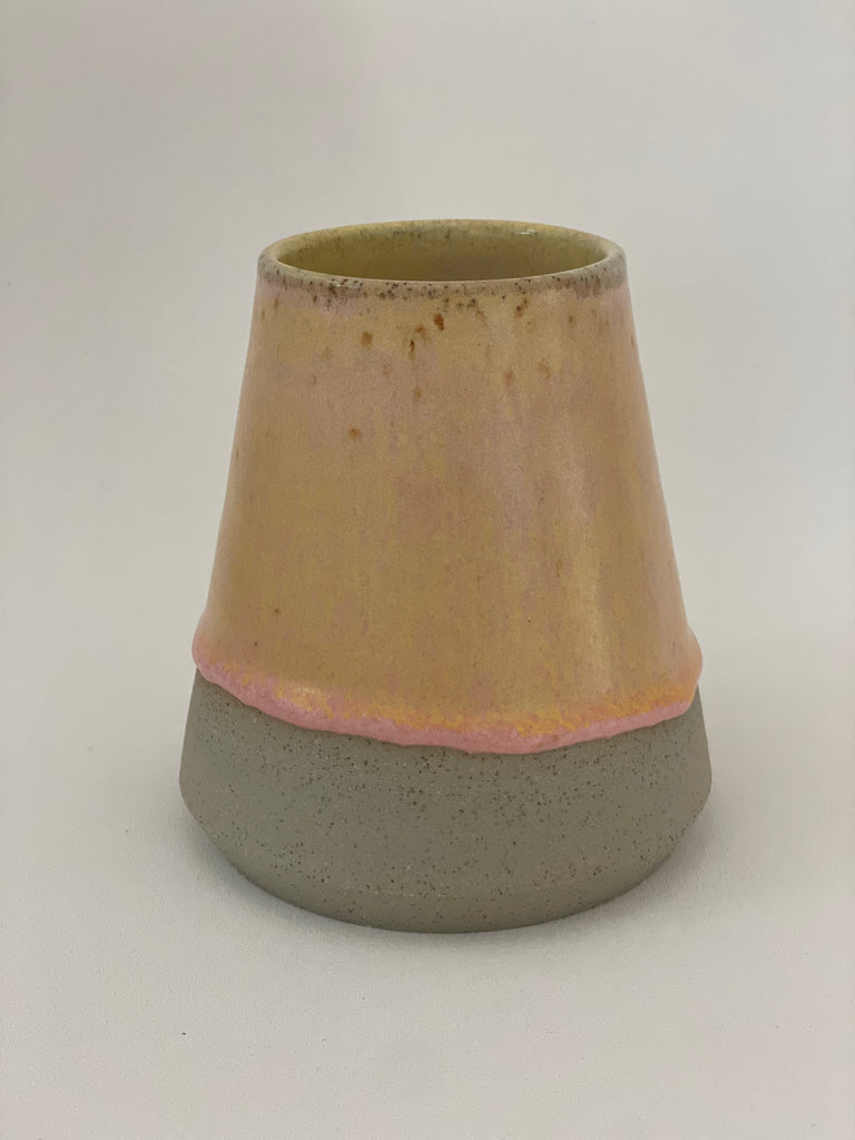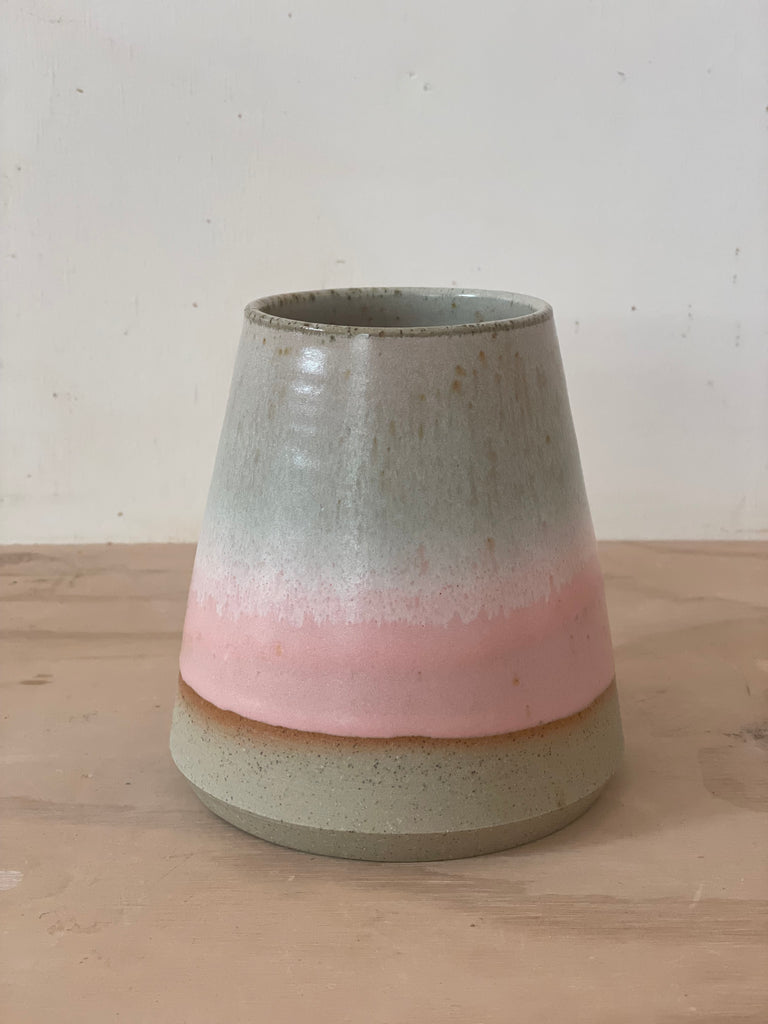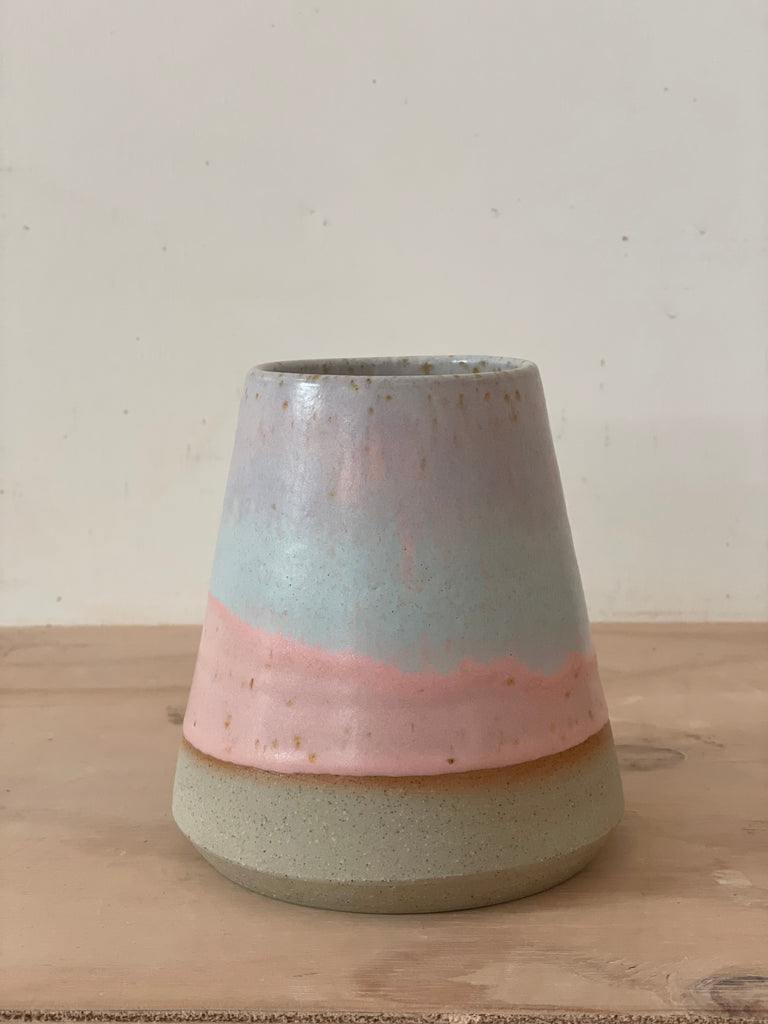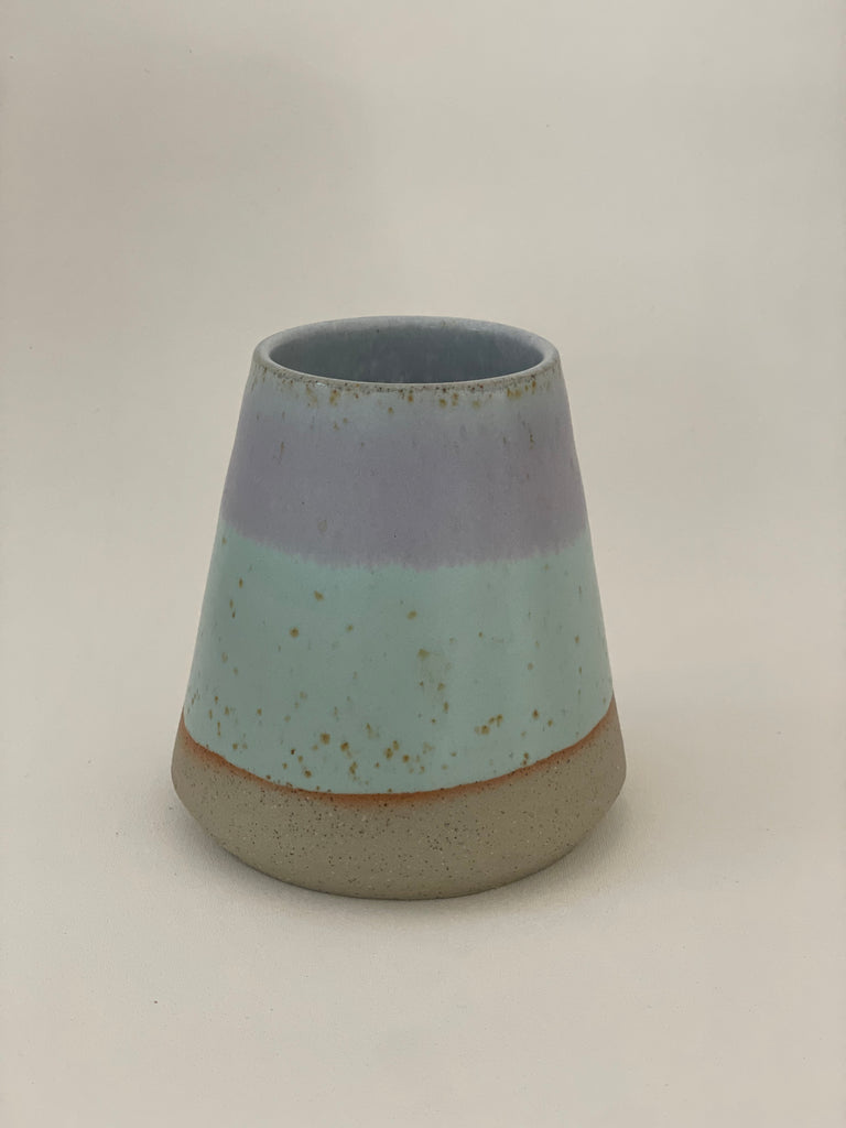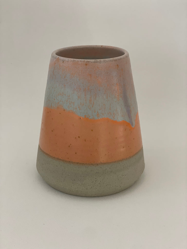 Brighten up your home with this medium mountain shaped vase. This vase features a mixture of unique studio glazes on the outside and white glaze on the inside.