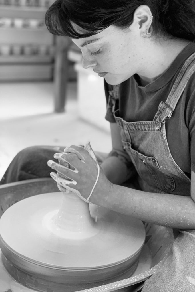 During the 2hour class you will receive an overview of wheel throwing from clay preparation, centering clay, through to making basic shapes and learning about how your pieces will be fired and glazed.